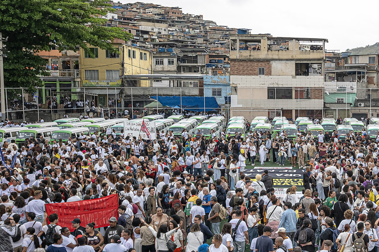 Dezenas de kombis e centenas de mototaxistas seguiram para o Palácio Guanabara, como no dia 29, para protestar contra o governador Cláudio Castro (PL).