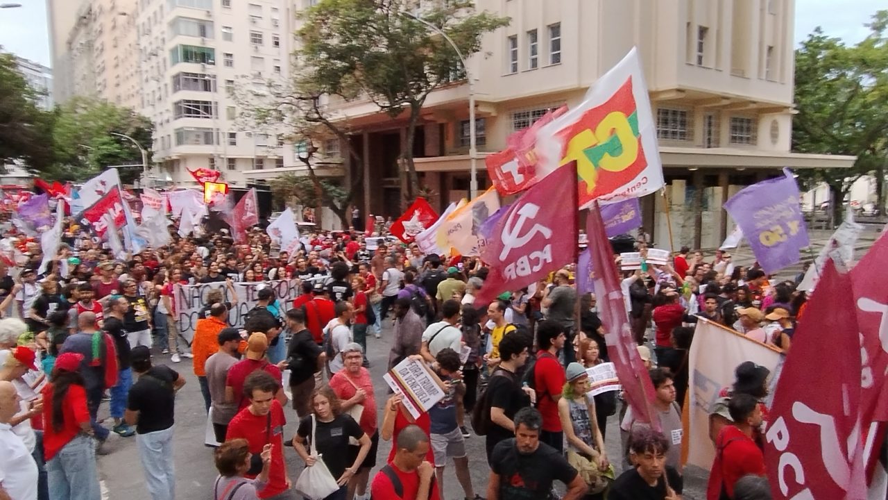 Nesta segunda-feira (5), ato em solidariedade ao povo venezuelano reuniu milhares de pessoas no Centro do Rio de Janeiro. Foram convocadas diversas manifestações nas capitais do país após o sequestro de Nicolás Maduro pelos Estados Unidos (EUA).
