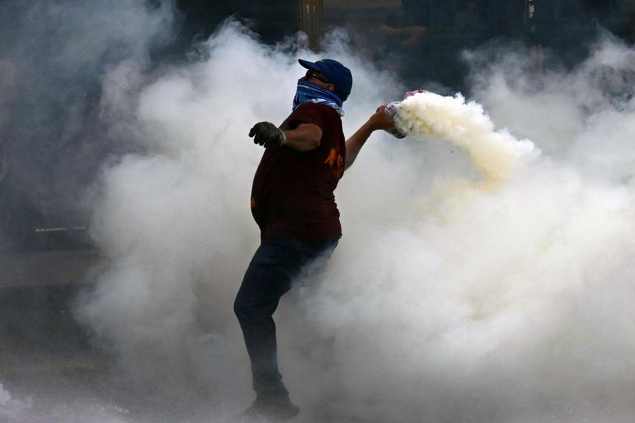 Os manifestantes foram atacados pela polícia com canhões de água, gás lacrimogêneo e balas de borracha.