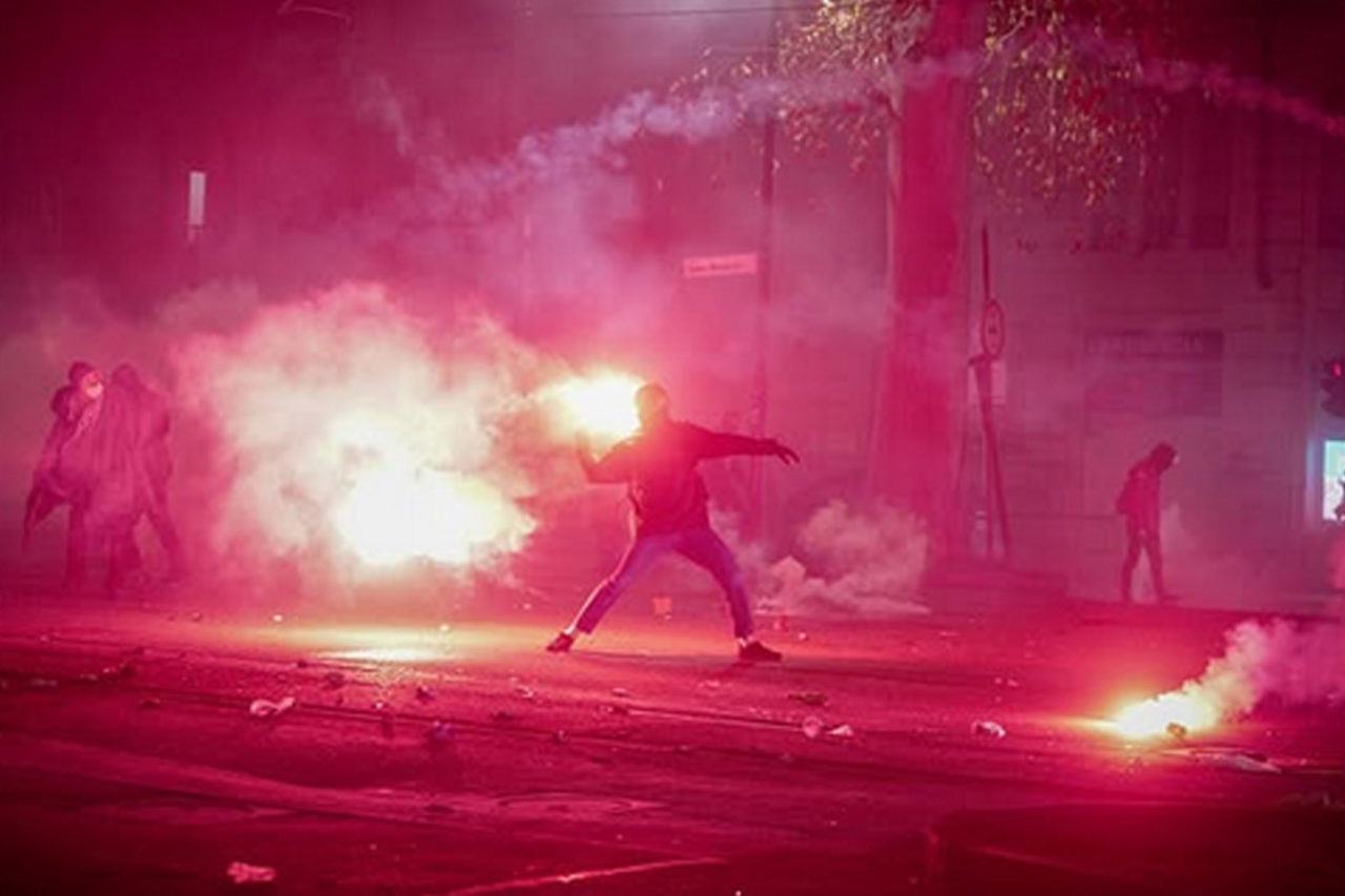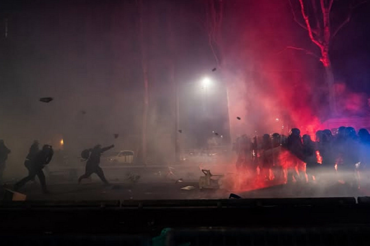 Confrontos eclodiram perto do local enquanto a polícia procurava bloquear o avanço dos manifestantes. A polícia usou canhões de água e gás lacrimogêneo, enquanto os manifestantes ergueram barricadas improvisadas e resistiram a repetidos ataques contra o protesto.