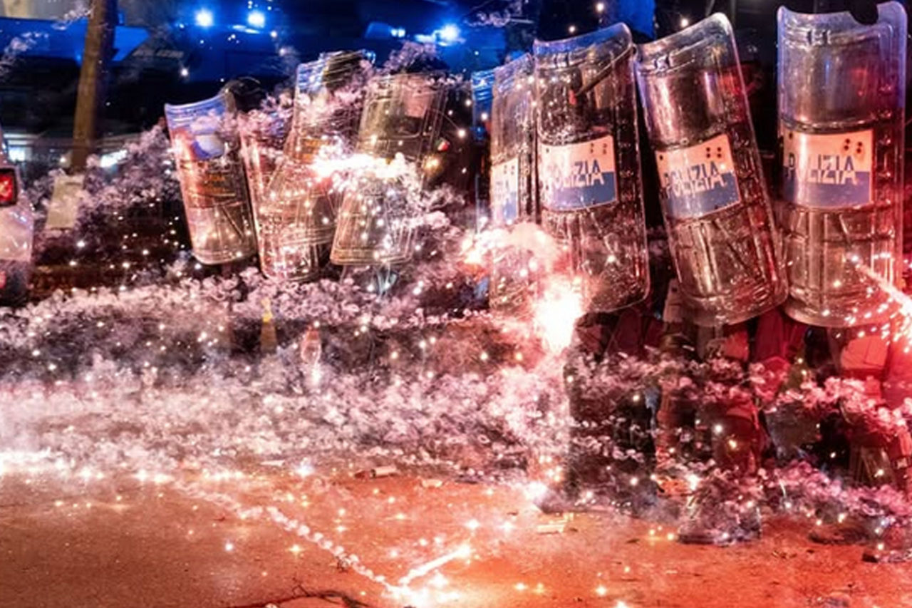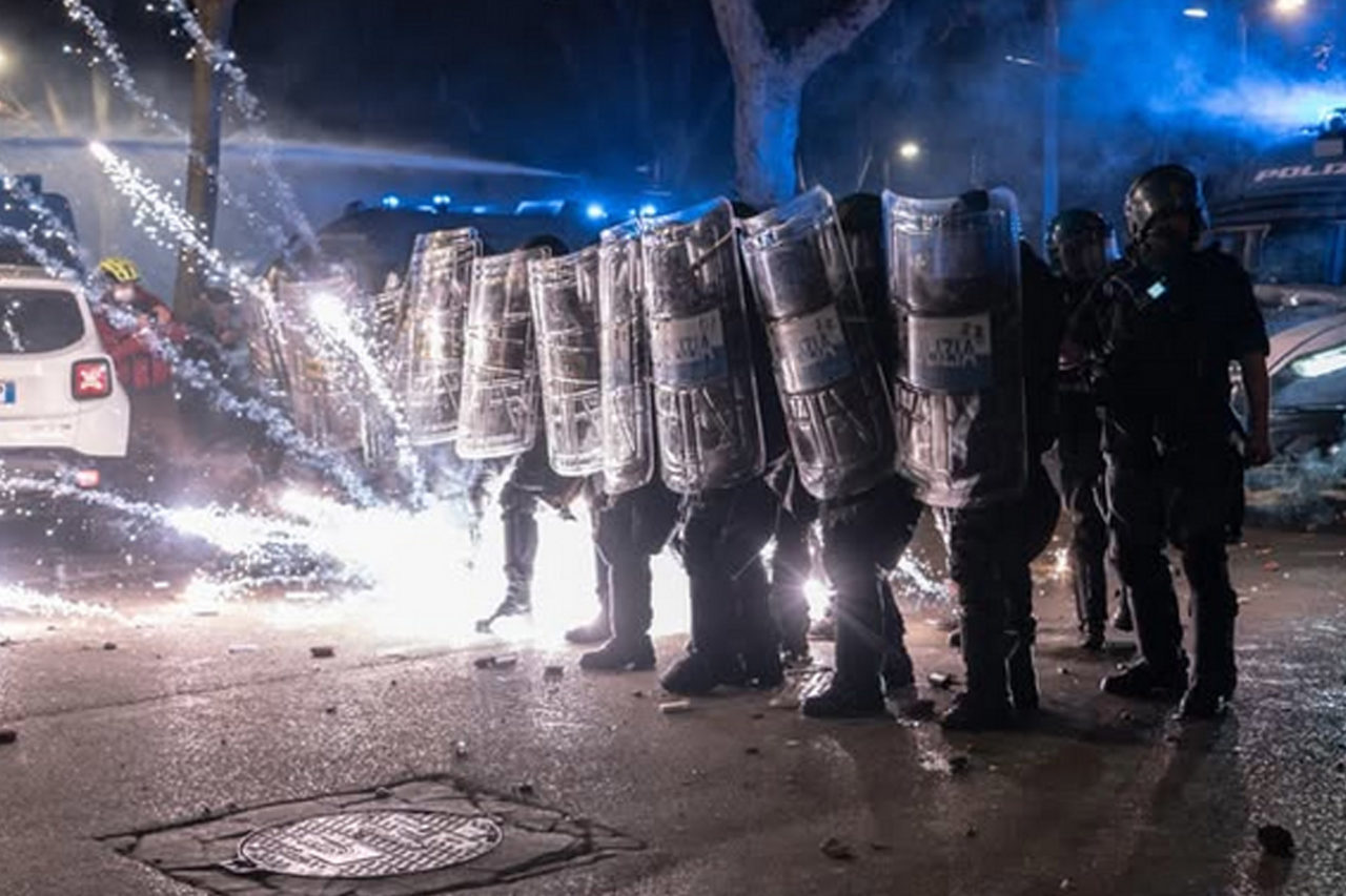 Mais de 30 pessoas foram espancadas até sangrar e um fotógrafo foi agredido diversas vezes por policiais. Em um determinado momento, um policial ficou isolado e foi cercado por vários manifestantes que o atacaram, em resposta às agressões. O governo italiano não se pronunciou sobre as agressões, e os noticiários, controlados pelo governo, apenas compartilharam o vídeo em que o policial é agredido.